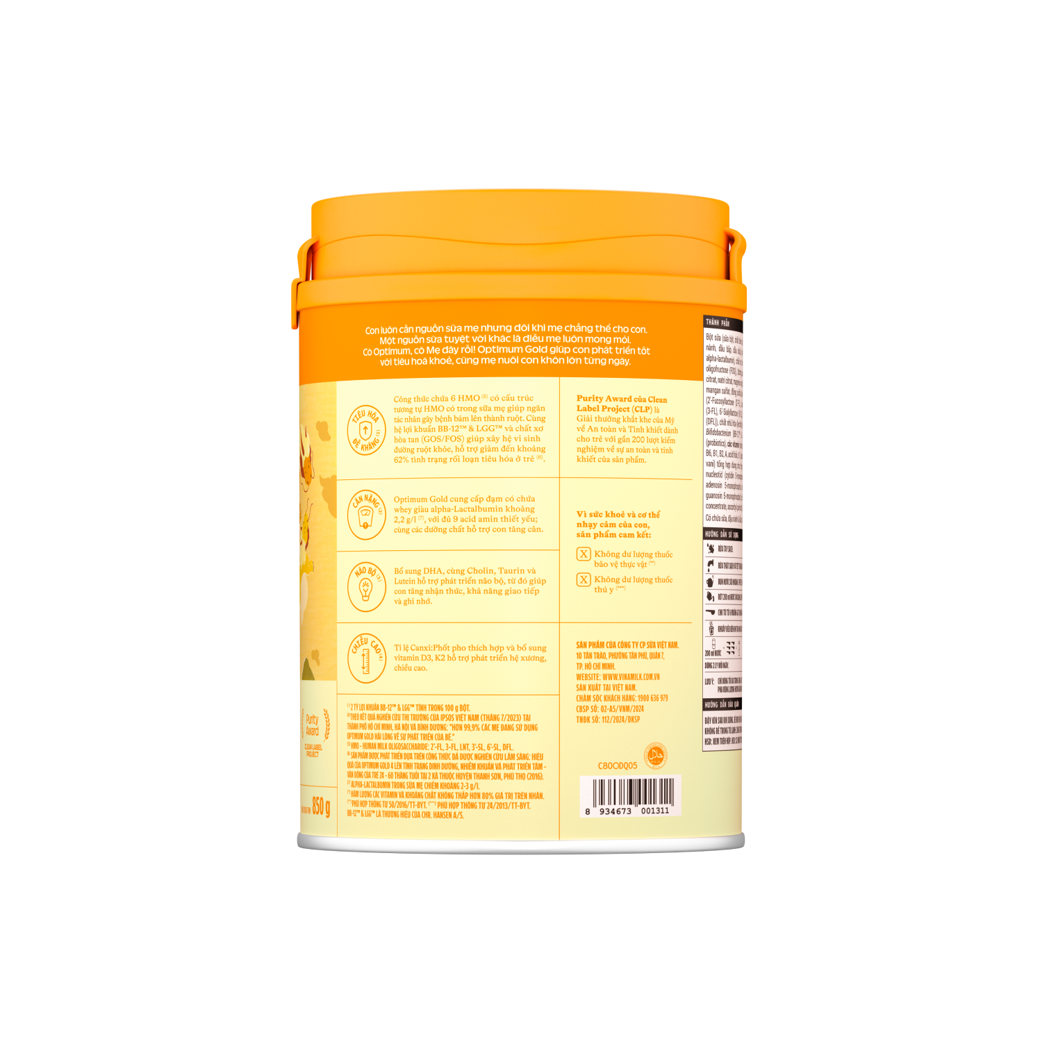 - Optimum Gold có hàm lượng Canxi và Vitamin D cao, cùng tỉ lệ Canxi : Phốtpho thích hợp giúp bé phát triển hệ xương và chiều cao.
